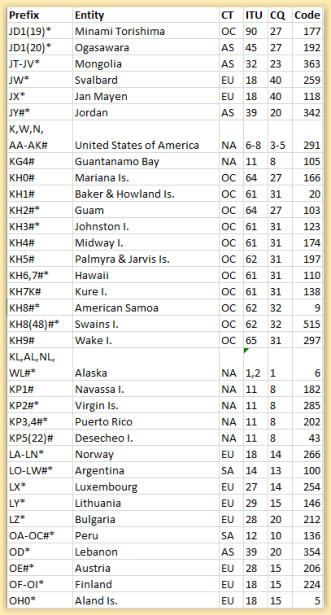 Current EntitiesThis is a list of all 340 Current DXCC entities on the ARRL DXCC Entities List. The ARRL DXCC List publication is available from the ARRL Publication Department for $5.95 plus shipping. To order this publication please visit the ARRL Store. The ARRL DXCC List is also available from our Publication Sales Department for $5.95 each plus shipping. In addition to the List, the paper copy includes: the DXCC rules, DXCC Award Application, ARRL DXCC Card Checkers, Incoming and Outgoing QSL Bureau information and more.Effective April 2, 2012 DXCC card checkers can check all current and deleted entities on the DXCC list. Also, only approved DXCC card checkers can check 160 Meters. For the list of approved 160 Meter card checkers (noted in Red) visit: http://www.arrl.org/dxcc-card-checker-master-listNotes: * Indicates current list of entities for which QSLs may be forwarded by the ARRL membership Outgoing QSL Service.# Indicates entities with which US Amateurs may legally handle third-party message traffic.The last change of the Current DXCC List was made in January 2018. Then, because of an amendment in the DXCC List Criteria, the Entity of Kosovo, with Prefix Z6 was added. NOTES:18 (H40) Only contacts made after 23:59 UTC, March 31, 1998 count for this entity.19 (JD) Formerly Marcus Island.20 (JD) Formerly Bonin and Volcano Islands22 (KP5) Only contacts made March 1, 1979, and after, count for this entity.48 (KH8) Only contacts made July 22, 2006, and after, count for this entity.