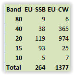 In total, we made nearly 16,000 contacts, of which 46% were on CW and
