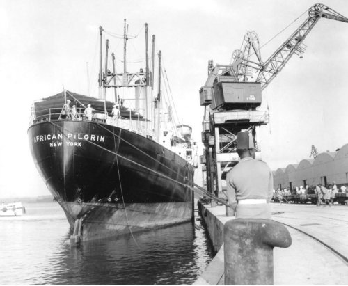 covers were off and the final cargo left in the African Pilgrim was being lifted