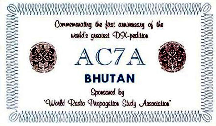 Saja, AC5SQ; His Excellency the Prime Minister; and for many favors given me, the Bhutan Trade