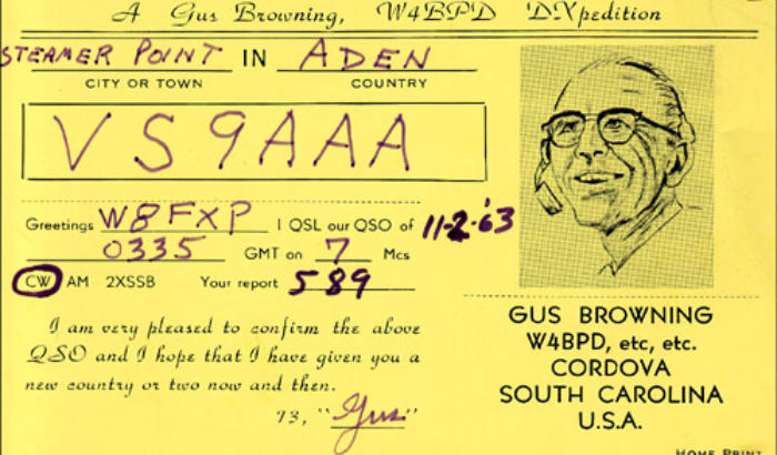 In November 1963, Gus made a side trip back to Aden to take part of the DXpedition to Kuria Muria