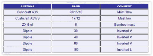 Antennas: Cushcraft A3S and A3WS yagi beams plus verticals for 30 to 80 m bands, single vertical for
