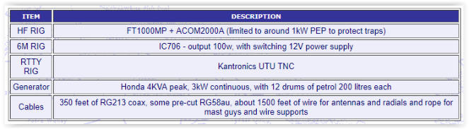 Jukka will leave the generator and barrels of petrol with Tom VP6TC; the A3 and A3WS antennas will